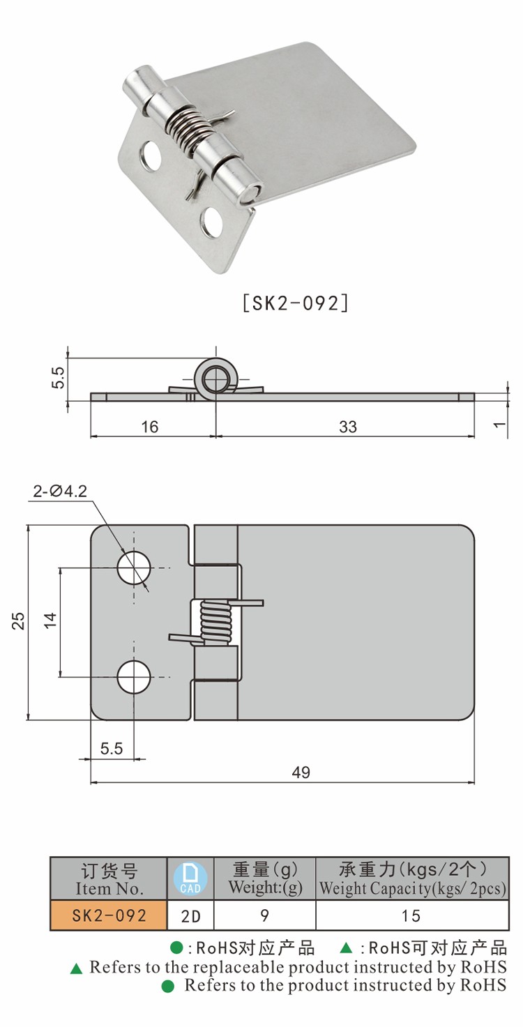 尚坤SK2-092机箱机柜隐藏式回弹铰链电箱电气柜弹簧铰链