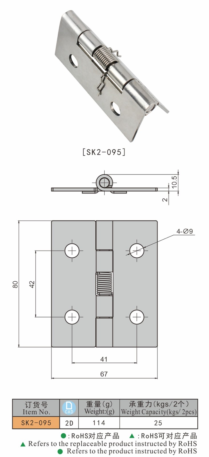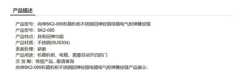 尚坤SK2-095机箱机柜不锈钢回弹铰链电箱电气柜弹簧铰链