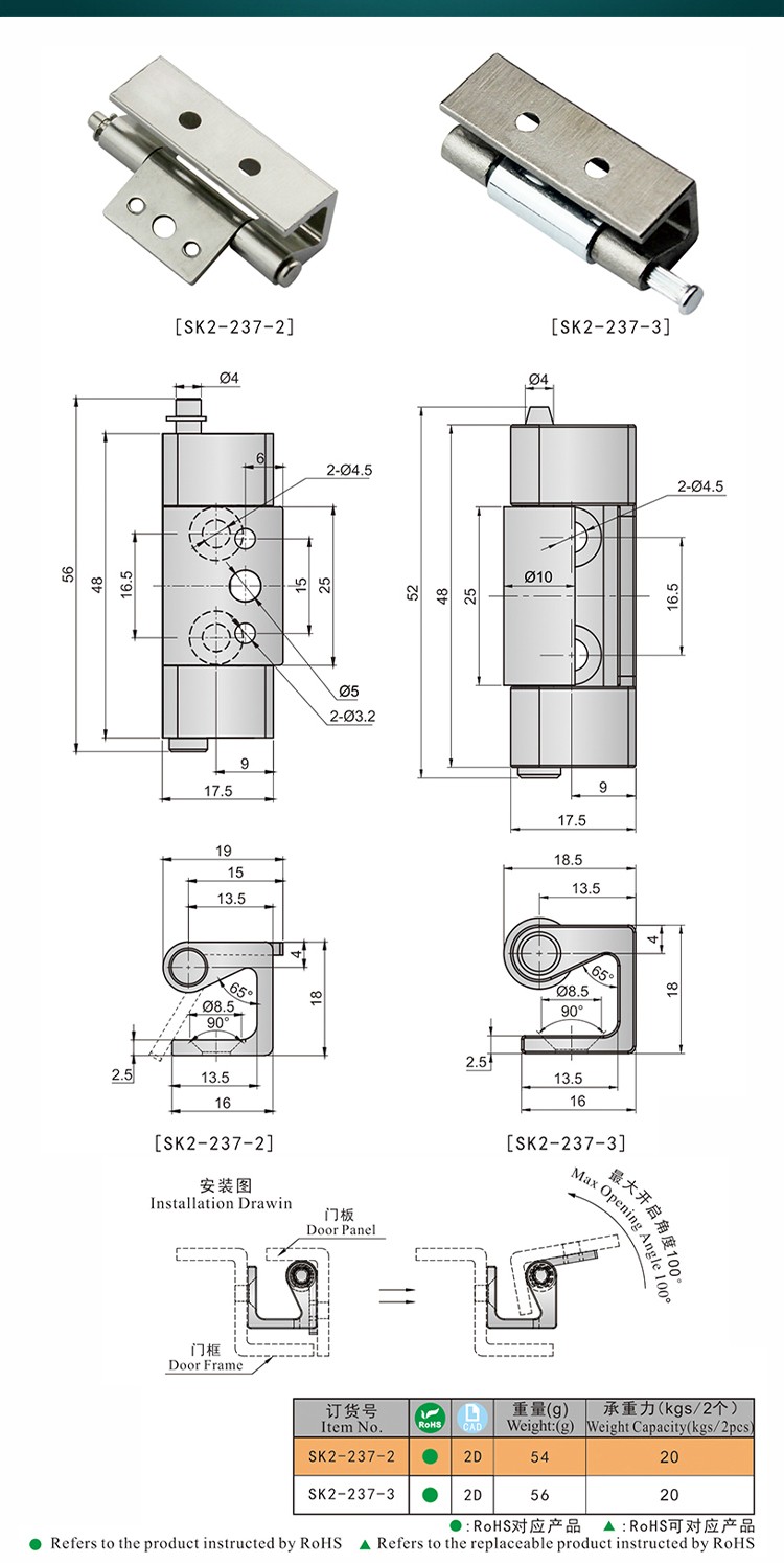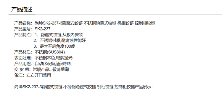 尚坤SK2-237-3隐藏式铰链 不锈钢隐藏式铰链 机柜铰链 控制柜铰链