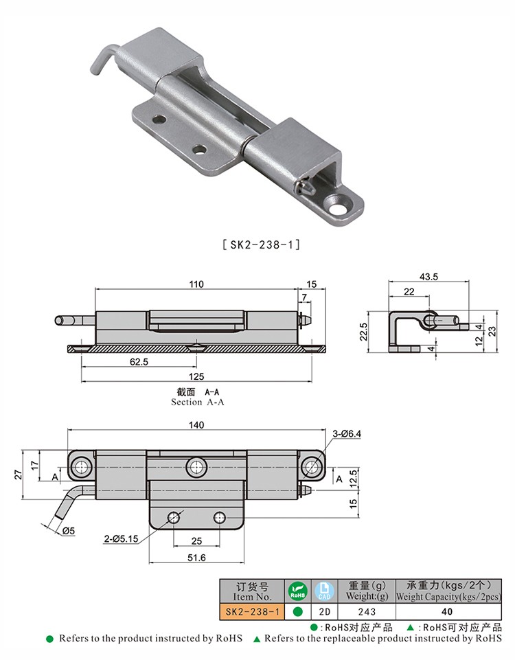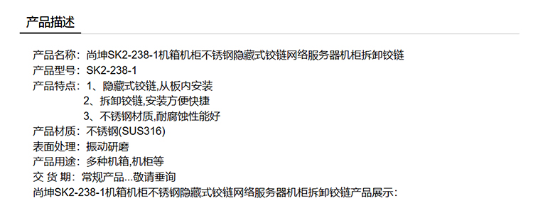 尚坤SK2-238-1机箱机柜不锈钢隐藏式铰链网络服务器机柜拆卸铰链