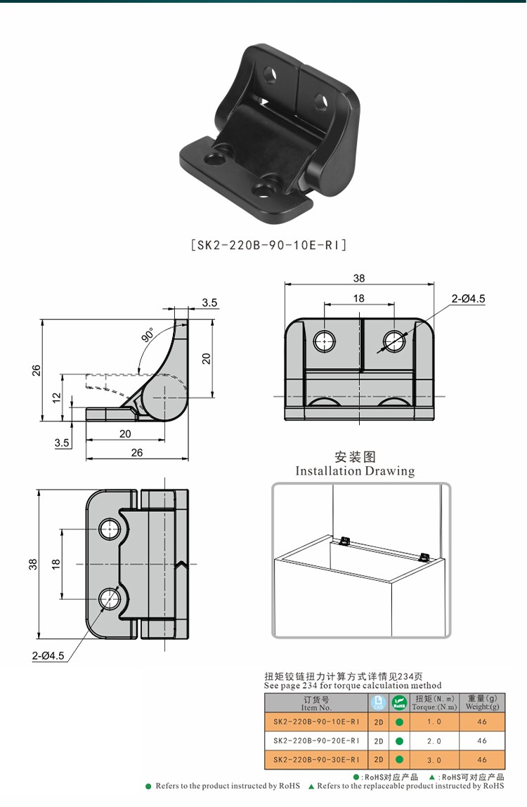 尚坤SK2-220B-90饮料机微型扭矩铰链医疗自动化设备门限位阻尼铰链