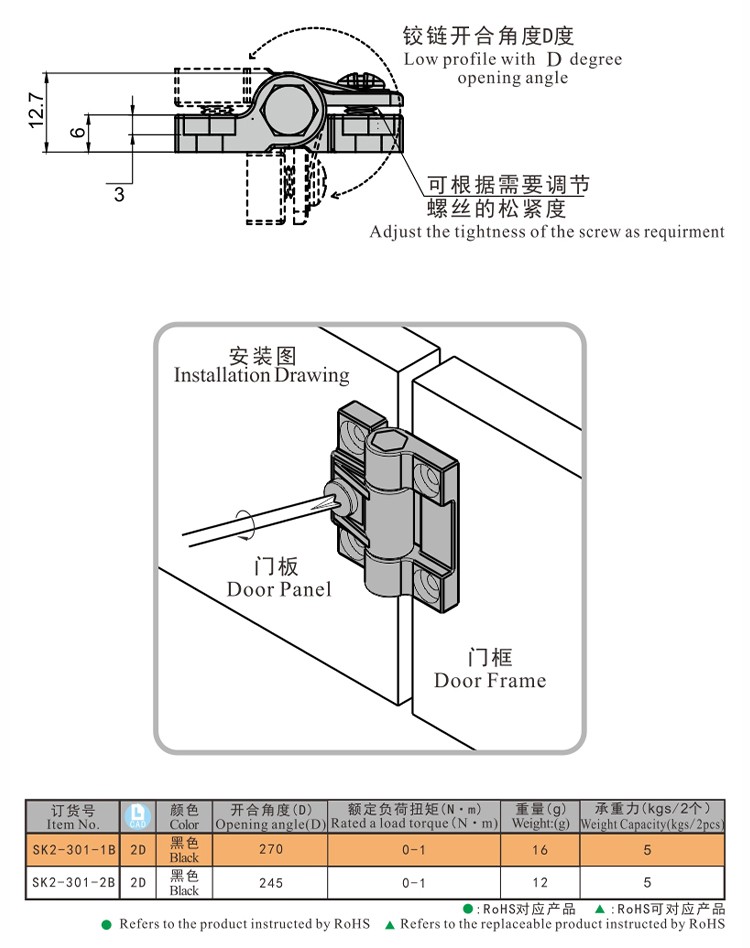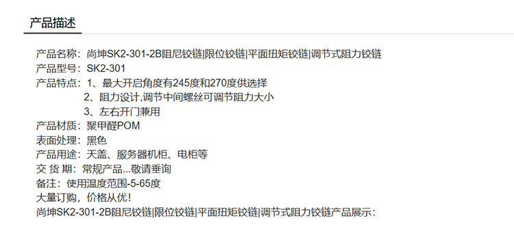 尚坤SK2-301-2B阻尼铰链限位铰链平面扭矩铰链调节式阻力铰链