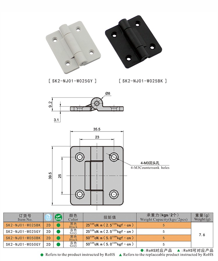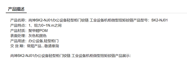 尚坤SK2-NJ01办公设备轻型柜门铰链 工业设备机柜微型扭矩铰链