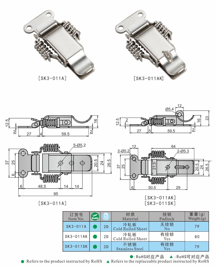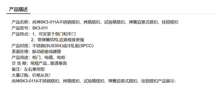 尚坤SK3-011A不锈钢搭扣、烤箱搭扣、试验箱搭扣、弹簧迫紧式搭扣、挂锁搭扣