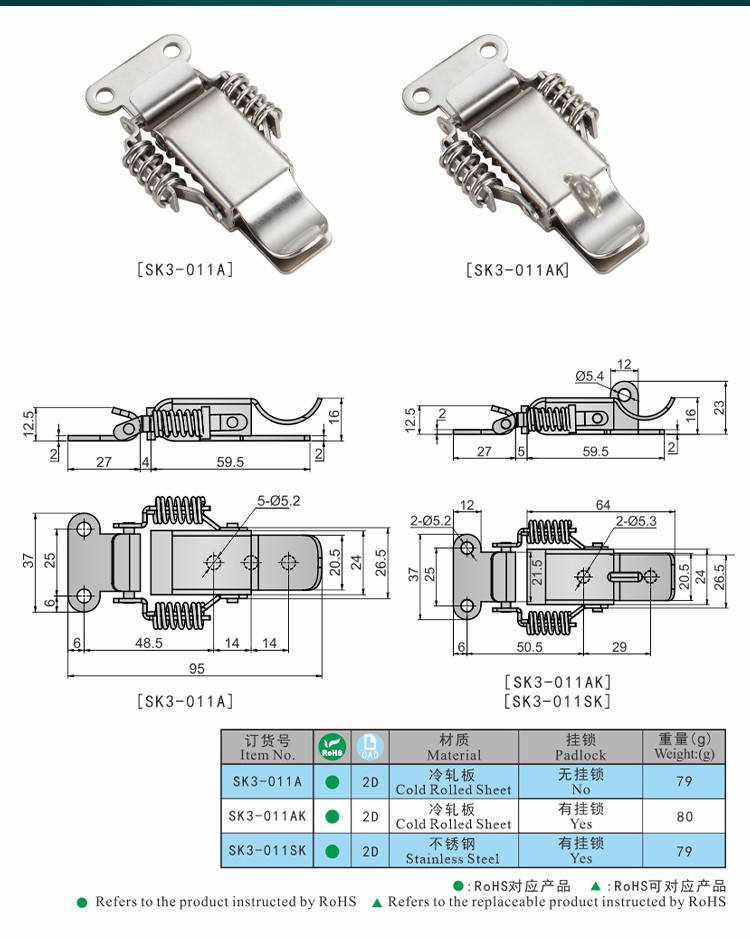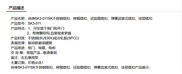 尚坤SK3-011SK不锈钢搭扣、烤箱搭扣、试验箱搭扣、弹簧迫紧式搭扣、挂锁搭扣