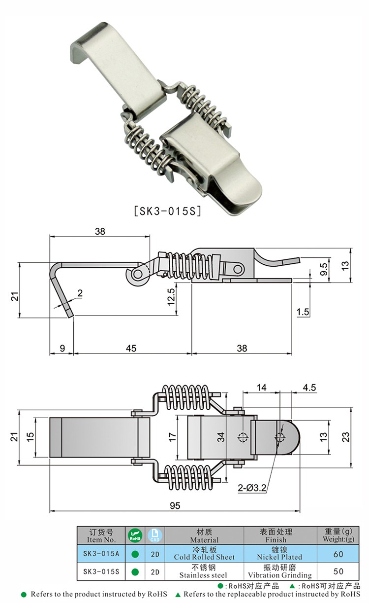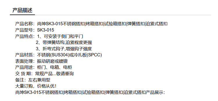 尚坤SK3-015不锈钢搭扣烤箱搭扣试验箱搭扣弹簧搭扣迫紧式搭扣