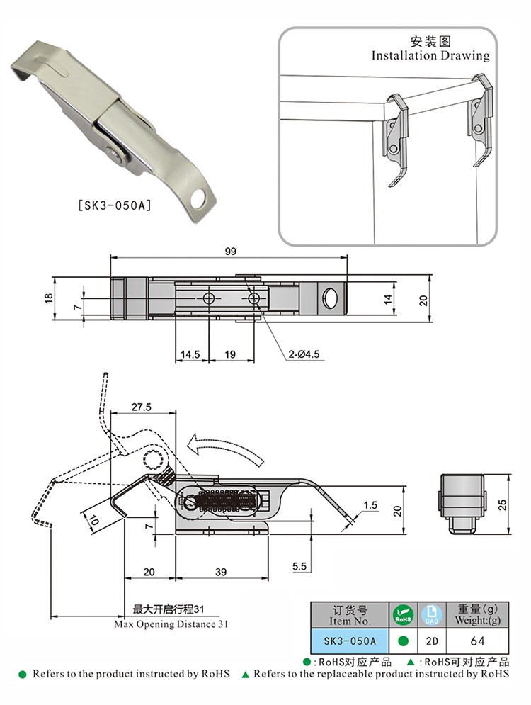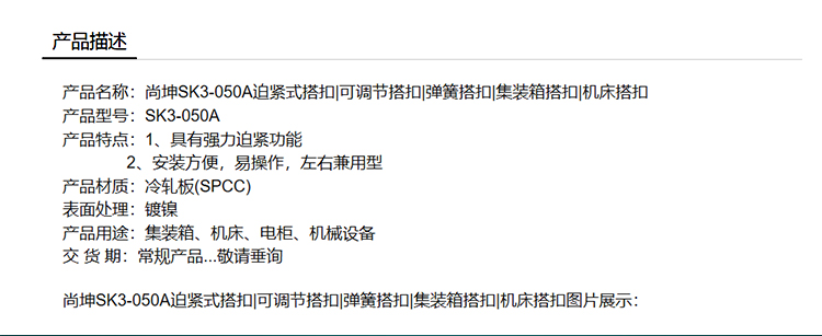尚坤SK3-050A迫紧式搭扣可调节搭扣弹簧搭扣集装箱搭扣机床搭扣