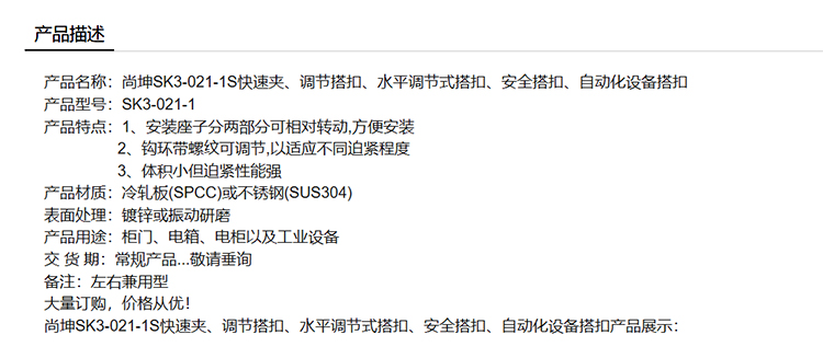 尚坤SK3-021-1快速夹、调节搭扣、水平调节式搭扣、安全搭扣、自动化设备搭扣