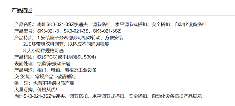 尚坤SK3-021-3SZ快速夹 调节搭扣 水平调节式搭扣 安全搭扣 自动化设备搭扣