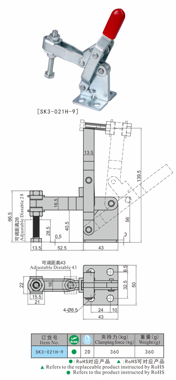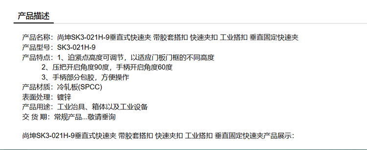 尚坤SK3-021H-9垂直式快速夹 带胶套搭扣 快速夹扣 工业搭扣 垂直固定快速夹