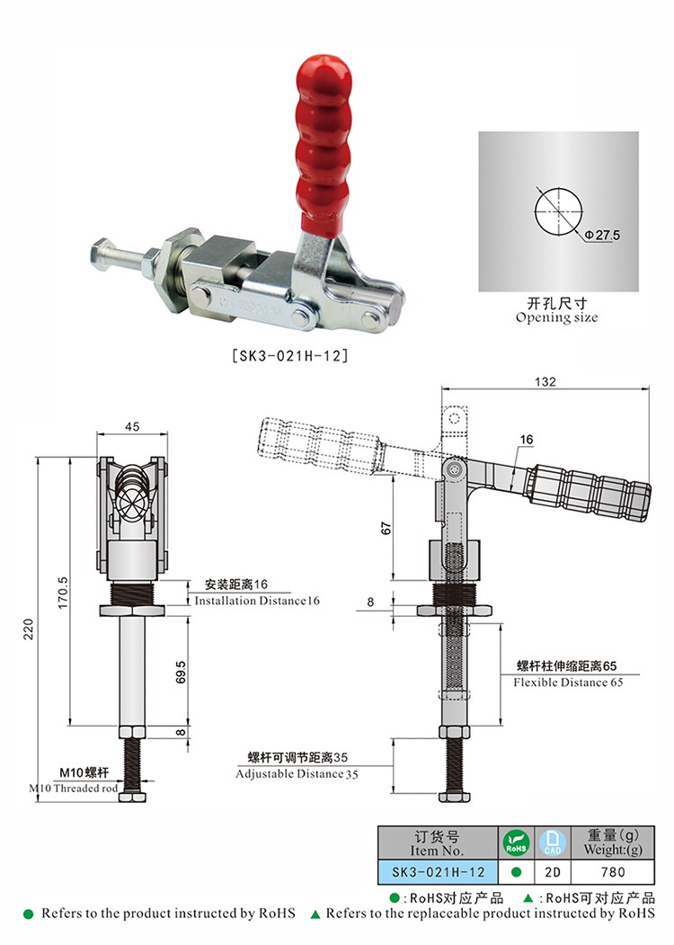 尚坤SK3-021H-12垂直式快速夹 带胶套搭扣 快速夹扣 工业搭扣