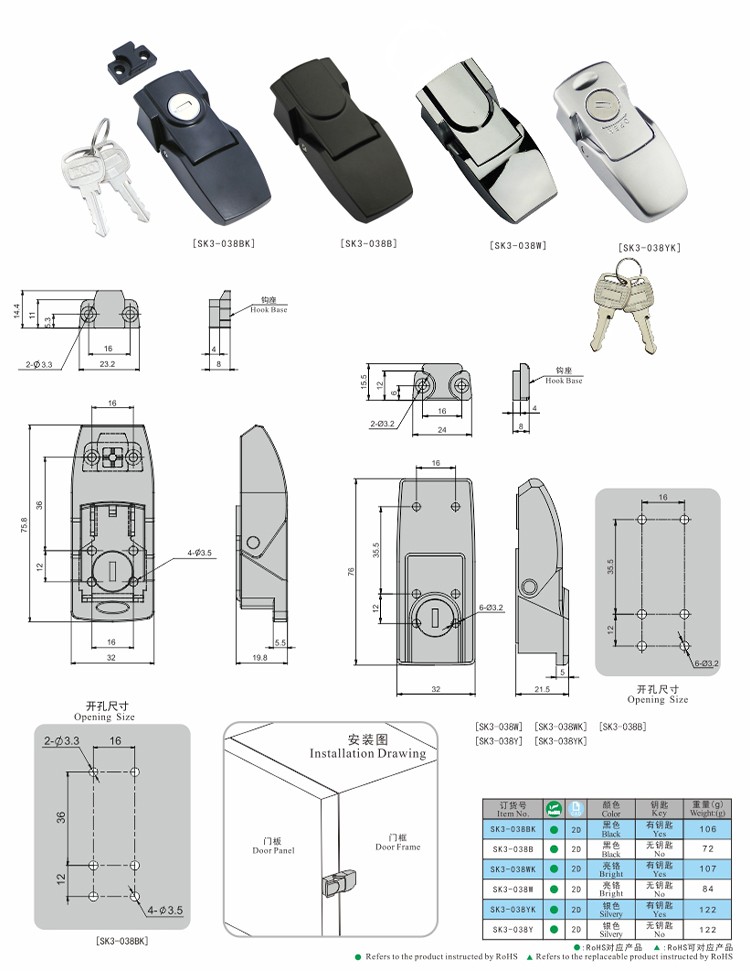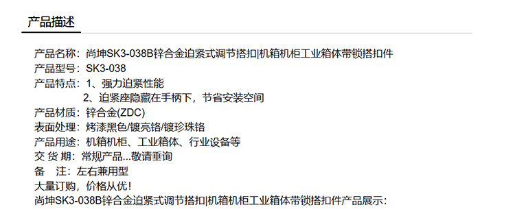 尚坤SK3-038B锌合金迫紧式调节搭扣机箱机柜工业箱体带锁搭扣件