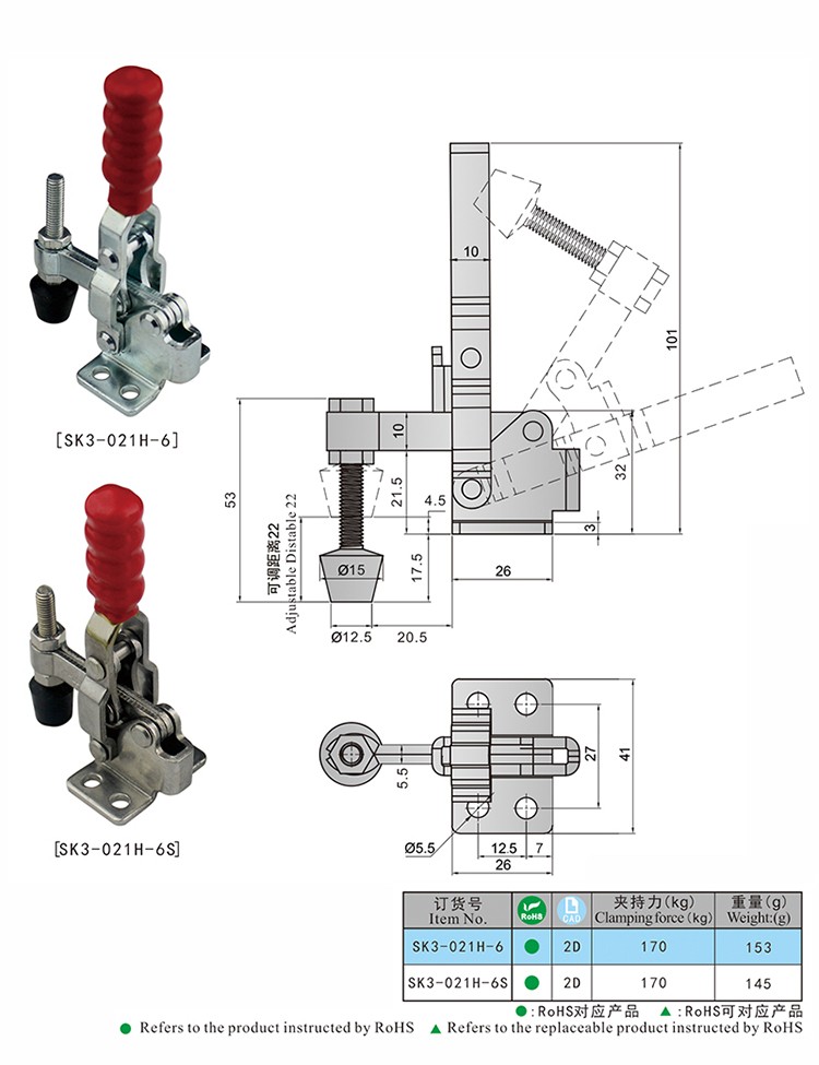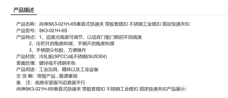 尚坤SK3-021H-6S垂直式快速夹 带胶套搭扣 不锈钢工业搭扣 固定快速夹扣
