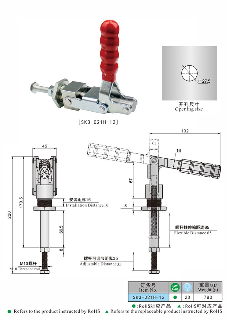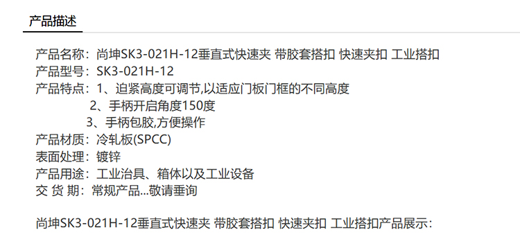 尚坤SK3-021H-12垂直式快速夹 带胶套搭扣 快速夹扣 工业搭扣