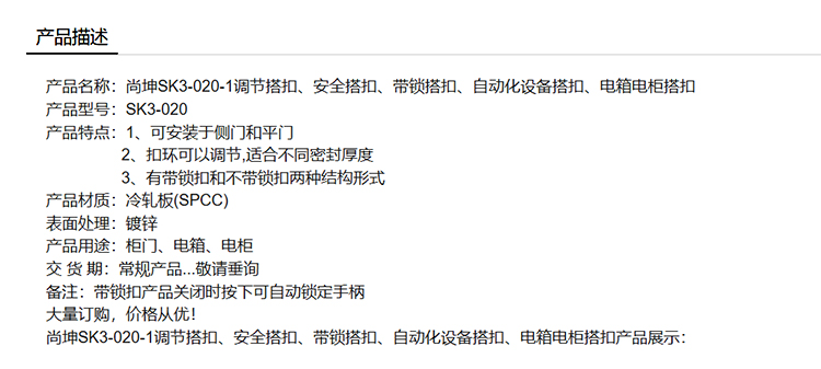 尚坤SK3-020-1调节搭扣、安全搭扣、带锁搭扣、自动化设备搭扣、电箱电柜搭扣