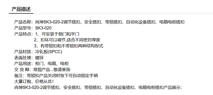 尚坤SK3-020-2调节搭扣 安全搭扣 带锁搭扣 自动化设备搭扣 电箱电柜搭扣