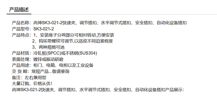 尚坤SK3-021-2快速夹、调节搭扣、水平调节式搭扣、安全搭扣、自动化设备搭扣