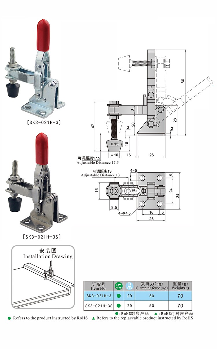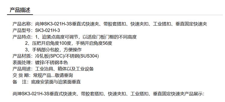 尚坤SK3-021H-3S垂直式快速夹、带胶套搭扣、快速夹扣、工业搭扣、垂直固定快速夹