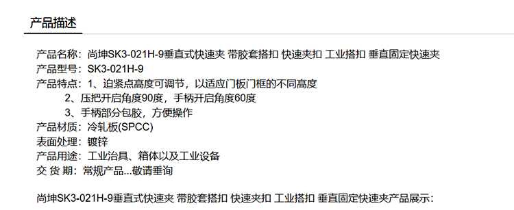 尚坤SK3-021H-9垂直式快速夹 带胶套搭扣 快速夹扣 工业搭扣 垂直固定快速夹